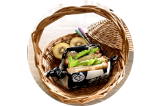 おにぎりをエシカルラップで包むと、ぴったりフィットし、見た目もかわいくお子様も喜んで食べてくれます。食べ終わったらたたんでコンパクトに持ち帰れます。