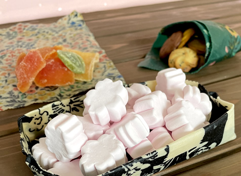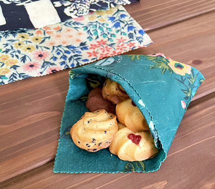 エシカルラップを折って、クッキーやお菓子のお皿にしたり、食べきれなかった残ったおやつを包んで持ち運びできるようにもなるので便利です。