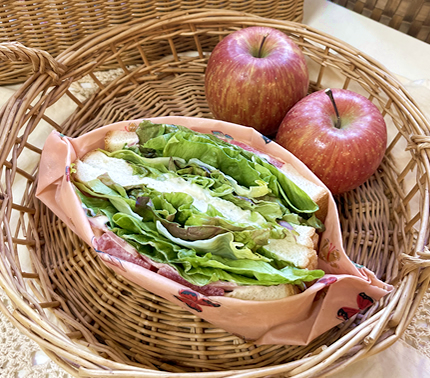 横から具がこぼれやすいサンドウィッチは、形が自由自在のエシカルラップだと、横から落ちるのもガードしてくれるので、サンドウィッチも食べやすくなります。