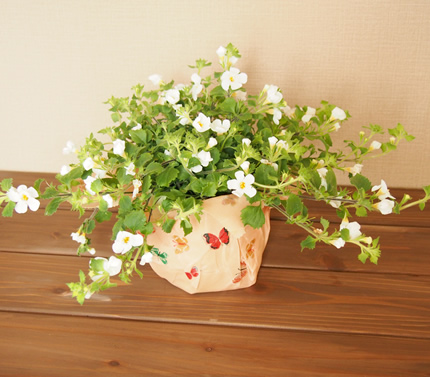 いつもの花瓶や植木をエシカルラップで包んでラッピングすると、華やかにいつもと違う花瓶に早変わり。お花に合わせて簡単可愛く気軽にイメージチェンジできます。